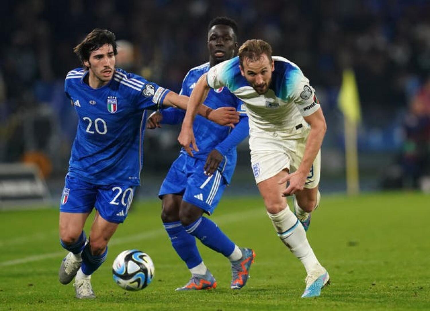 Italy employed a 4-4-2 formation featuring attacking wide players Riccardo Orsolini and Giacomo Raspadori, while control of the midfield was entrusted to Tonali and Inter`s Nicolò Barella.